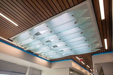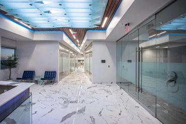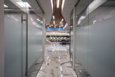 Aria collaborated closely with structural, mechanical, electrical, plumbing, and special systems engineers to achieve seamless system integration. A defining design feature is the custom wood ceiling — a sophisticated architectural element that fully conceals the fire suppression system, maintaining a sleek, uninterrupted design language while meeting stringent safety codes. This solution demanded continuous coordination across disciplines and precise detailing from early concept through installation.
